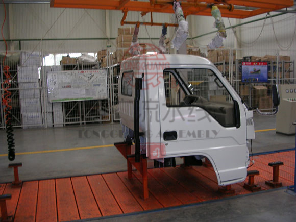 主要設(shè)備:騎馬螺栓擰緊機、輪胎抓取器、輪胎螺母擰緊機、環(huán)行排煙裝置、燈光調(diào)整儀、總裝配線。